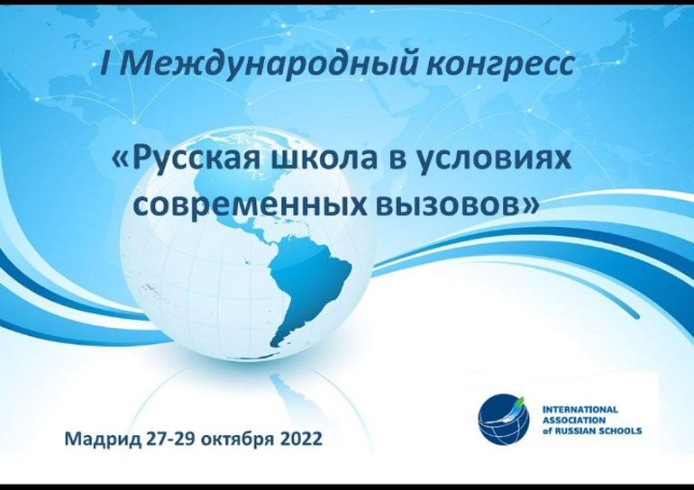 Международная ассоциация русских школ приглашает принять участие в I Международном конгрессе «Русская школа в условиях современных вызовов», который пройдёт в Мадриде 27 – 29 октября 2022 года. Формат проведения конгресса – смешанный.