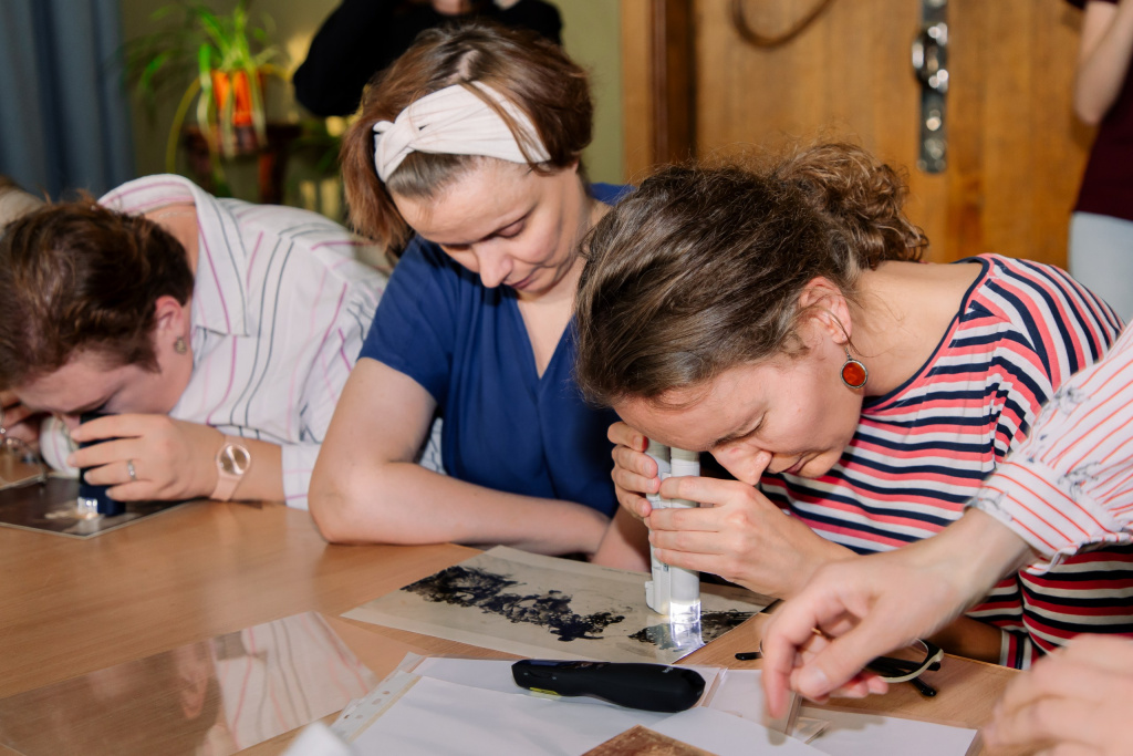 Участники получили возможность погрузиться в мир музейного исследования эстампов и фотографий, а также через микроскоп изучить отличия фотографии от полиграфического отпечатка, ксилографии от офсета, цинкографии от фототипии.