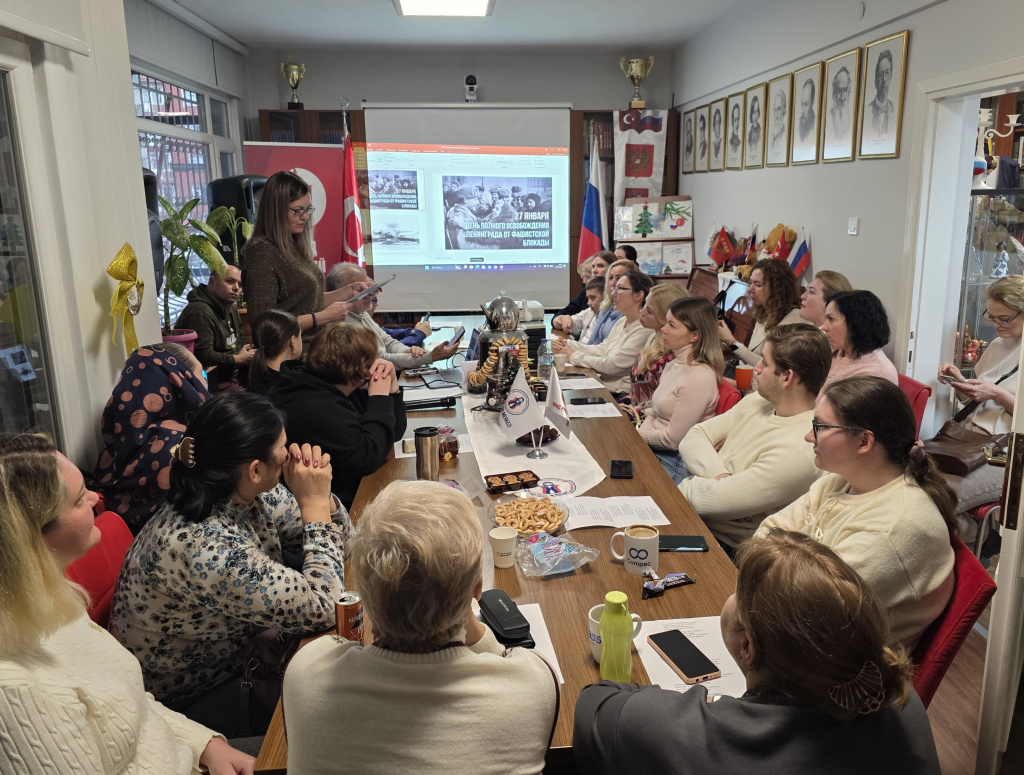 31 января в Русском культурном центре Стамбула прошло мероприятие, посвящённое 81-й годовщине полного освобождения Ленинграда от фашистской блокады. В зале не было свободных мест: почтить память героев пришли соотечественники, студенты стамбульских вузов, сотрудники, учащиеся и друзья Центра.