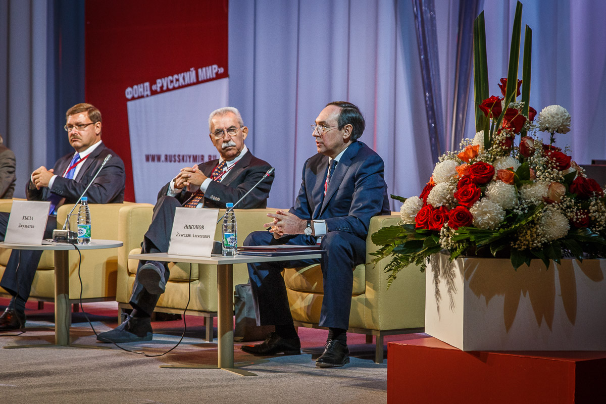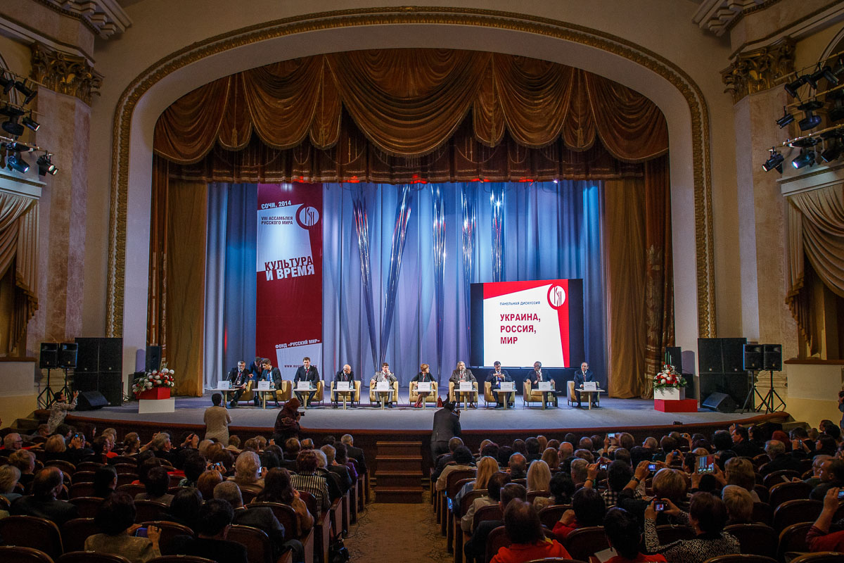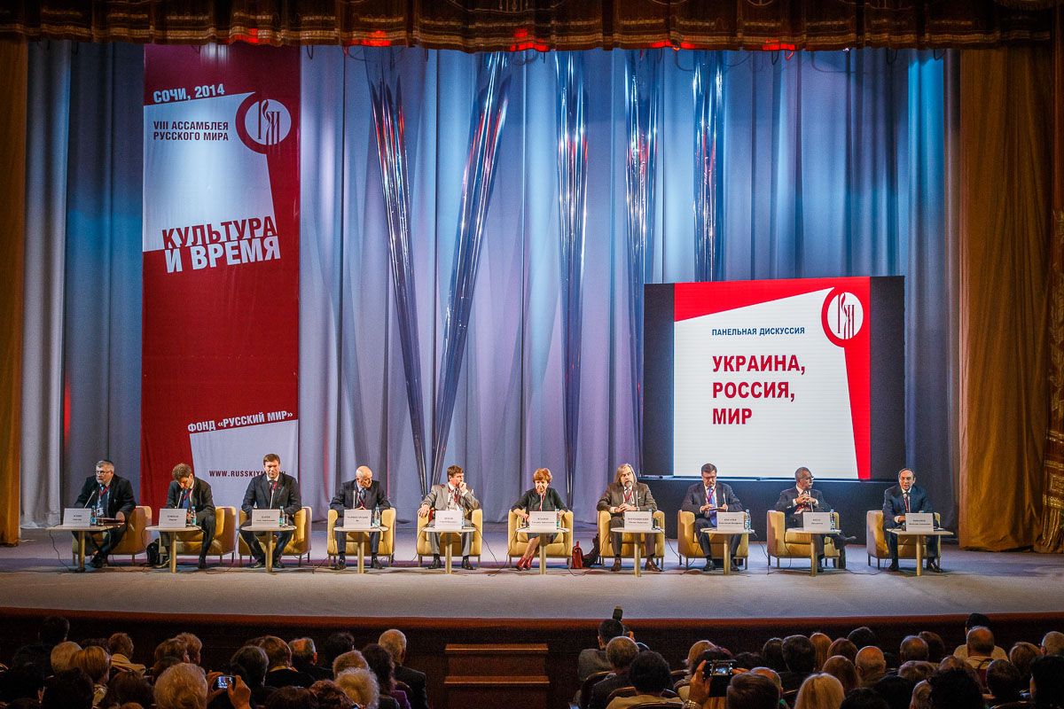 В рамках VIII Ассамблеи Русского мира состоялась панельная дискуссия «Украина, Россия, мир». Модератором дискуссии выступил председатель Комитета по образованию Государственной думы, декан факультета государственного управления МГУ, председатель правления фонда «Русский мир» Вячеслав Никонов.